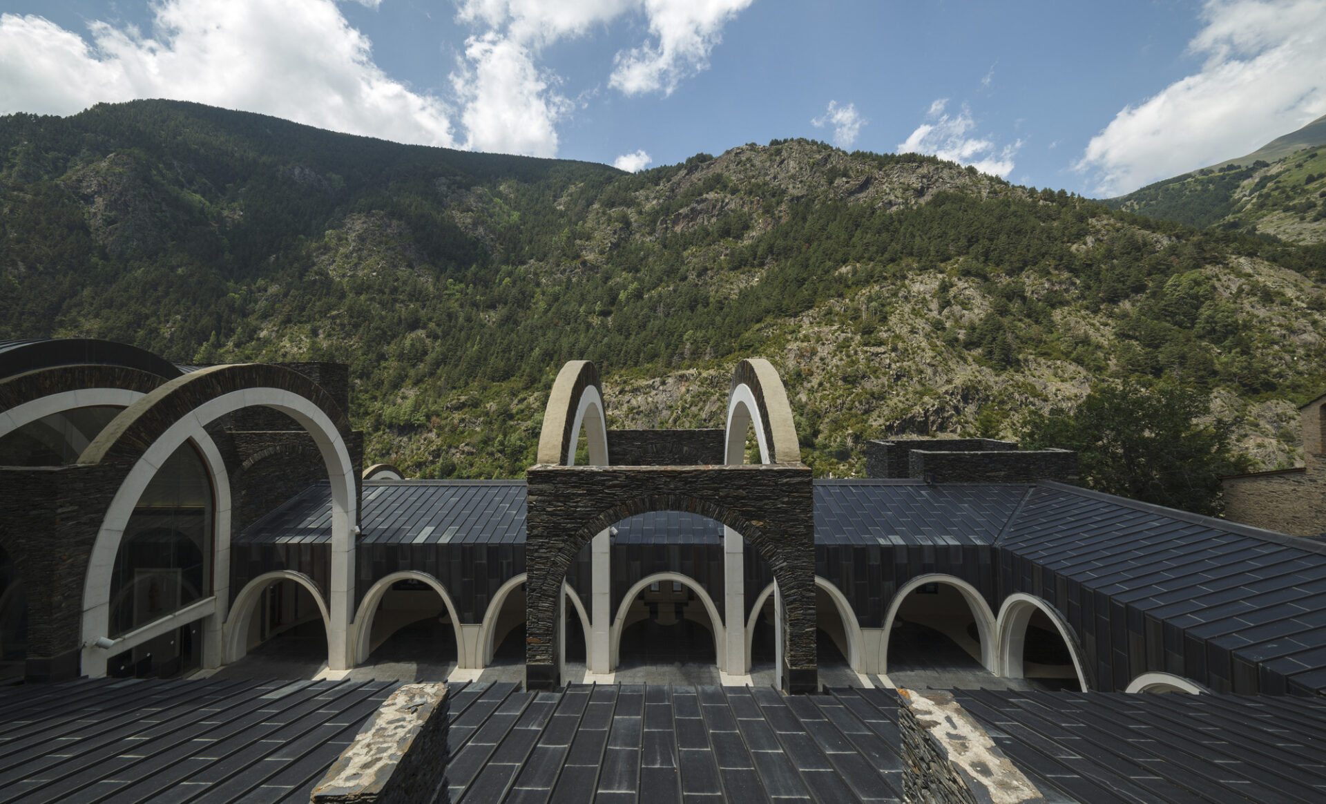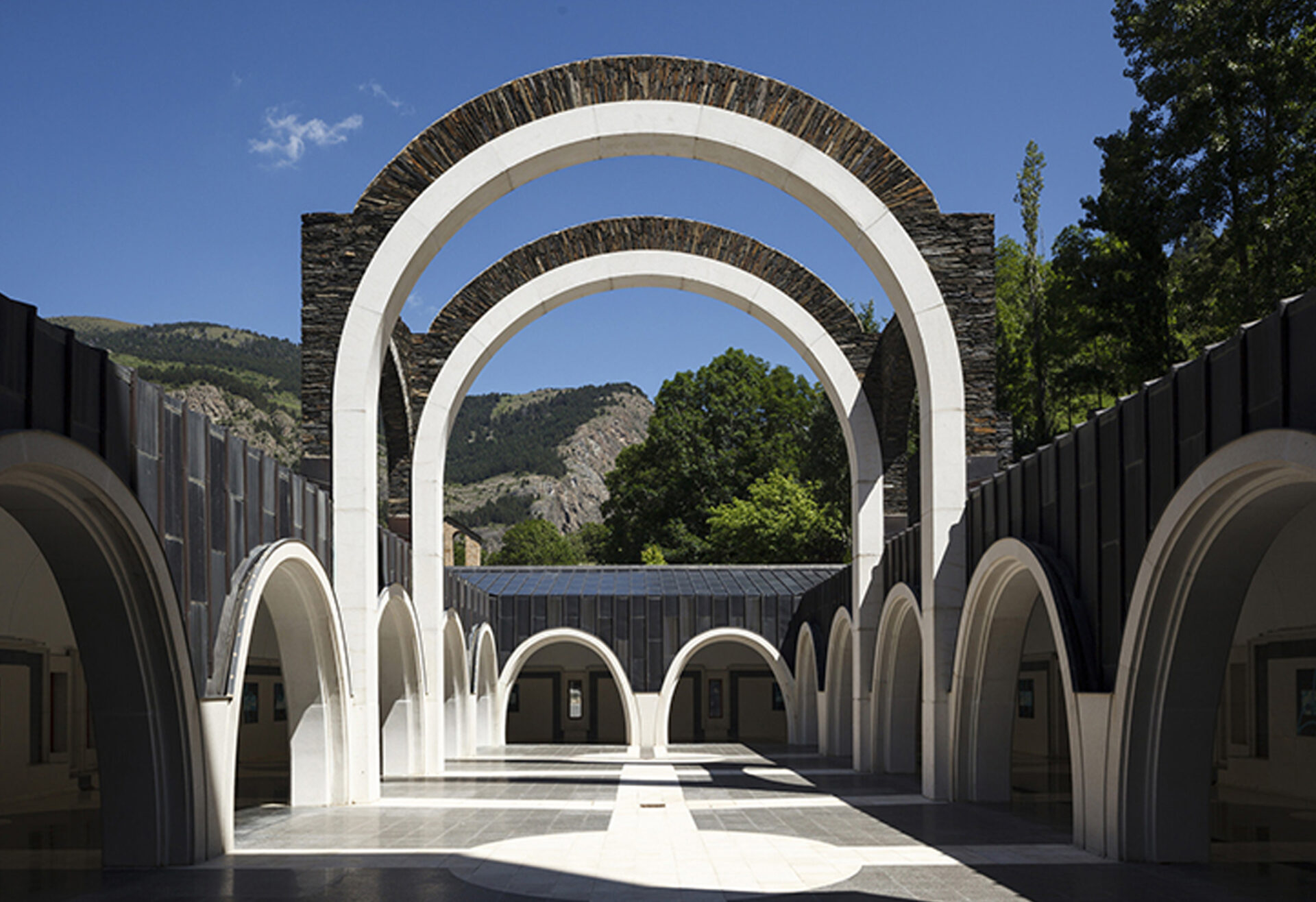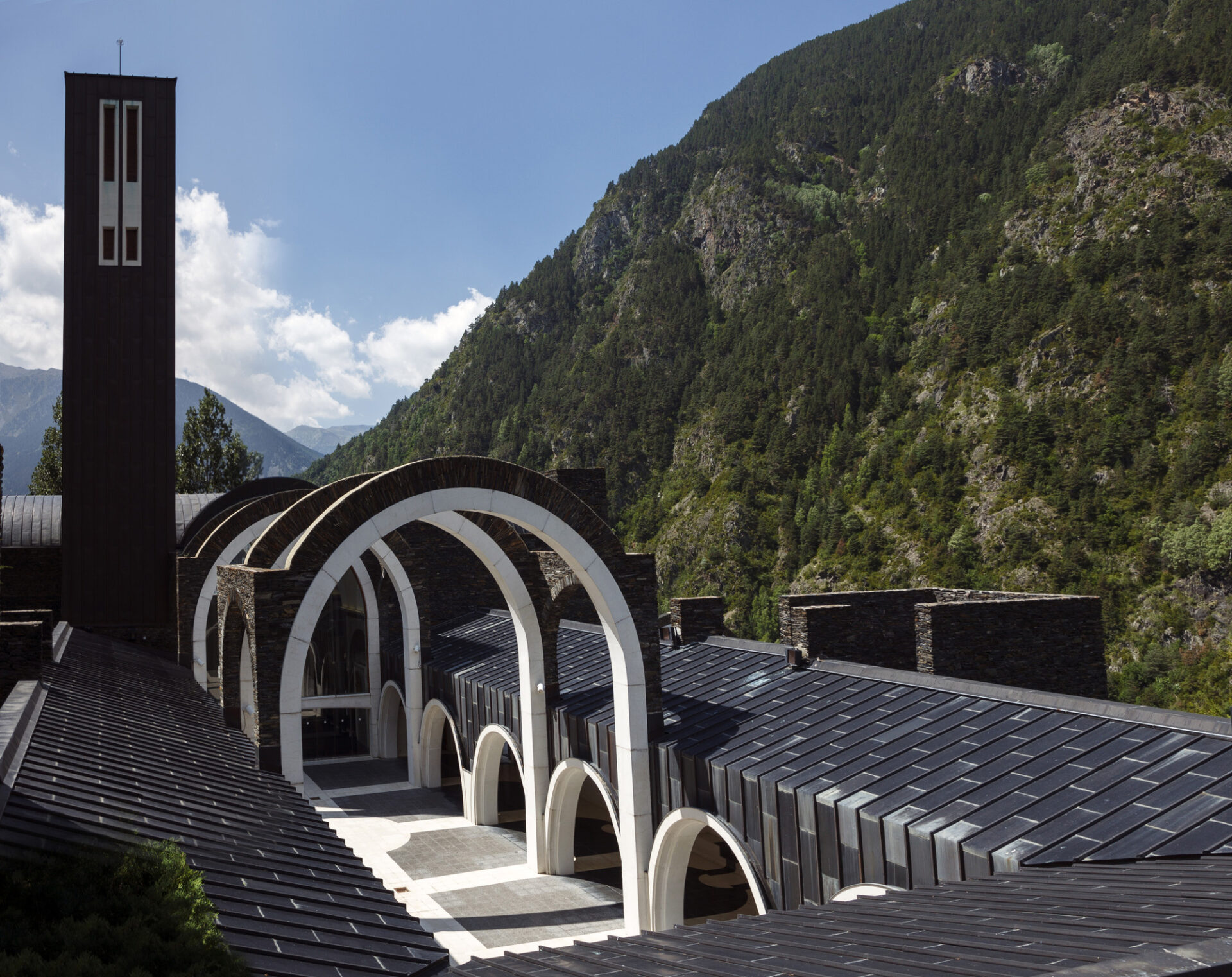The Sanctuary of Our Lady of Meritxell is located in the Andorran town of Canillo. The original Romanesque structure was destroyed by a fire in 1972. The new building project was commissioned by the architect Ricardo Bofill and it officially opened in 1978.