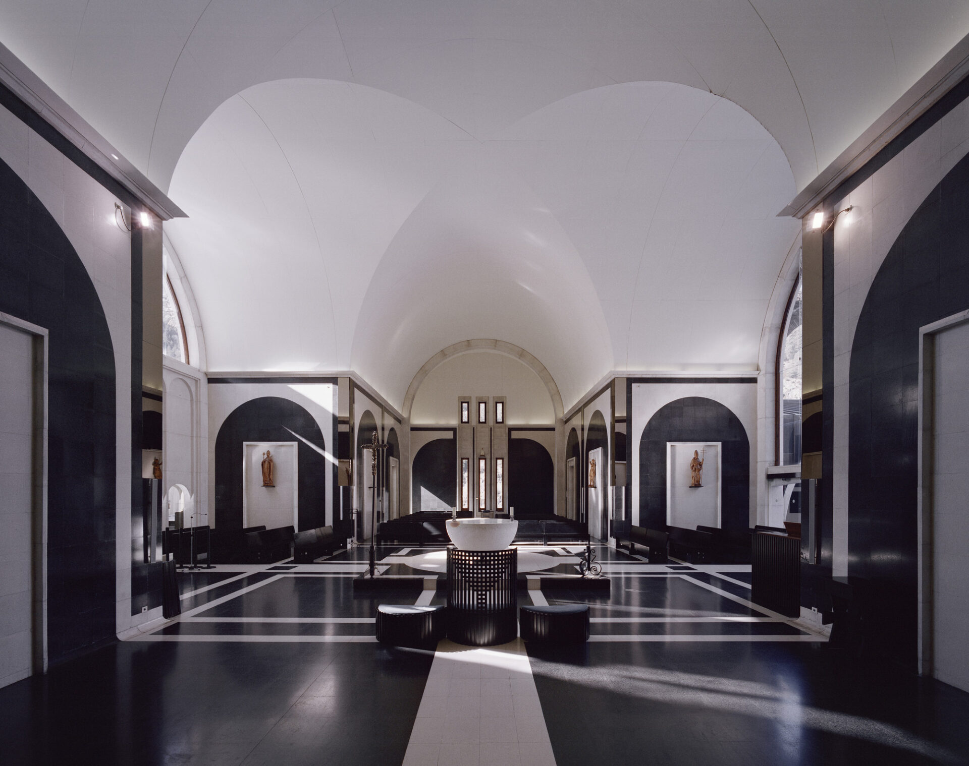 Bofill presented a sanctuary conceived with the intention of creating a large space that fitted harmonously into the landscape. The new structure was inspired by the original sources of Alberti and Palladio, and is also influenced by Catalan-Mudéjar style.