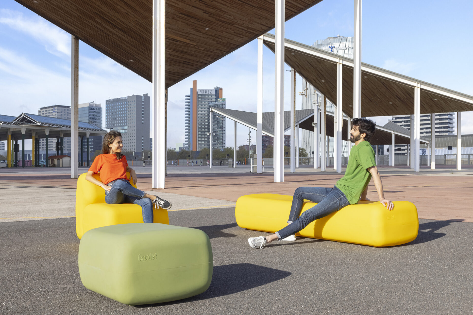 Mobiliario de textura suave, redondeado en sus formas y de atractivo visual para que se integre en cualquier entorno de forma natural.