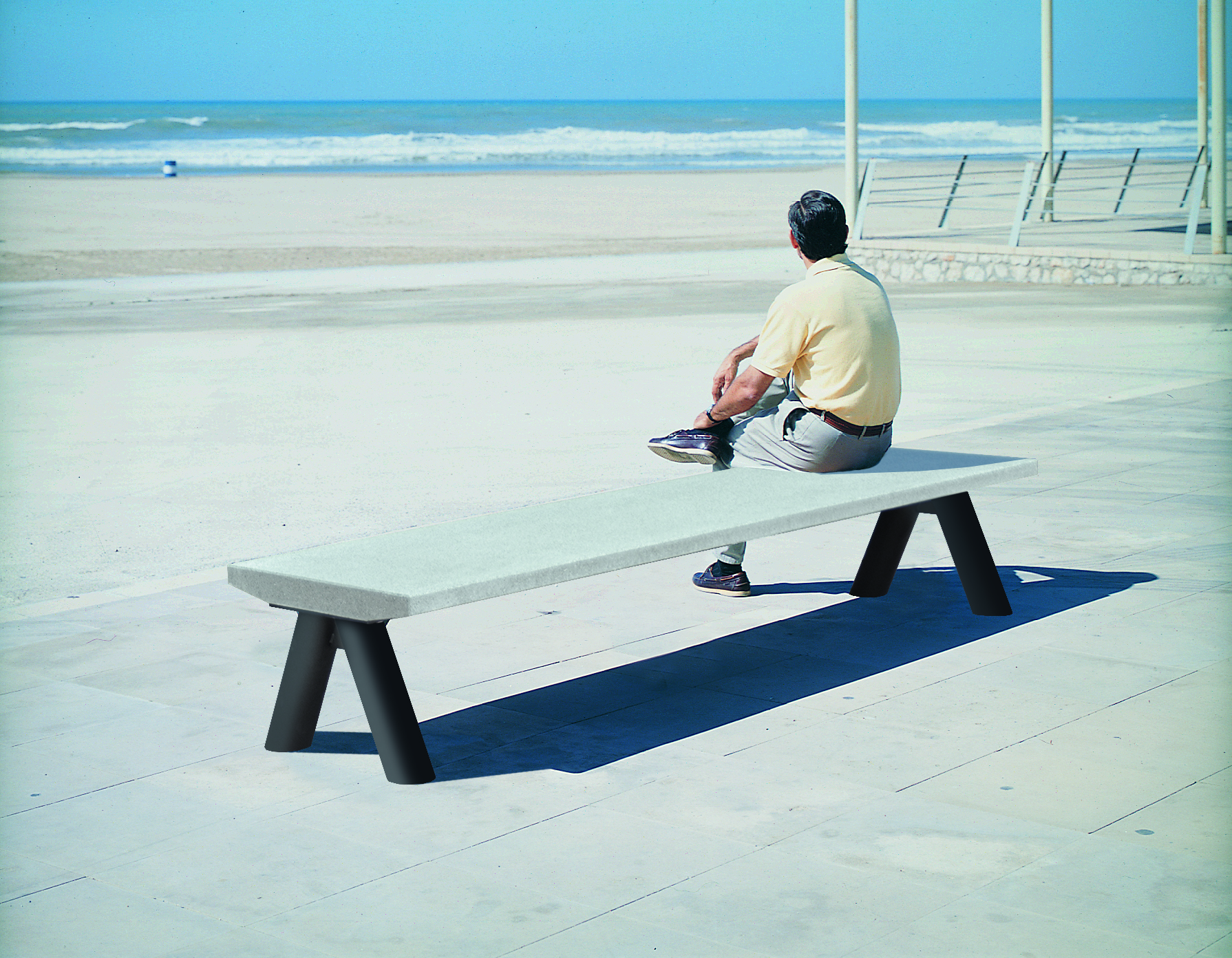 La colección Stone se compone de un asiento de hormigón UHPC-Slimconcrete de mínimo grosor y longitud variable de entre 2 y 3 metros, combinable con dos opciones de soportes metálicos, que realzan la esbeltez del asiento. Concebido como un sistema flexible y de uso universal, puede instalarse en agregación lineal o de forma individual en cualquier tipología de espacio público.