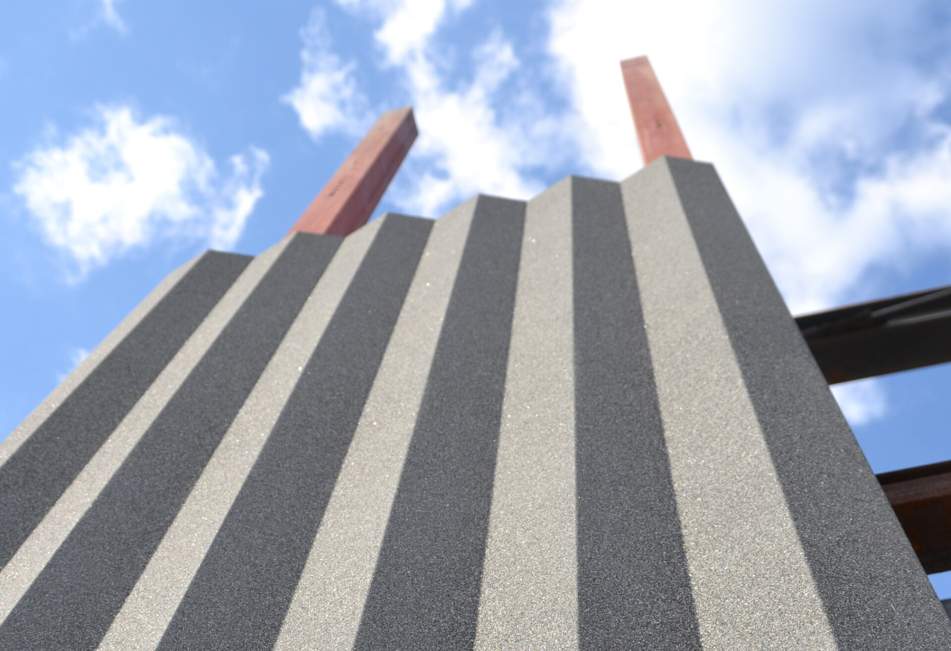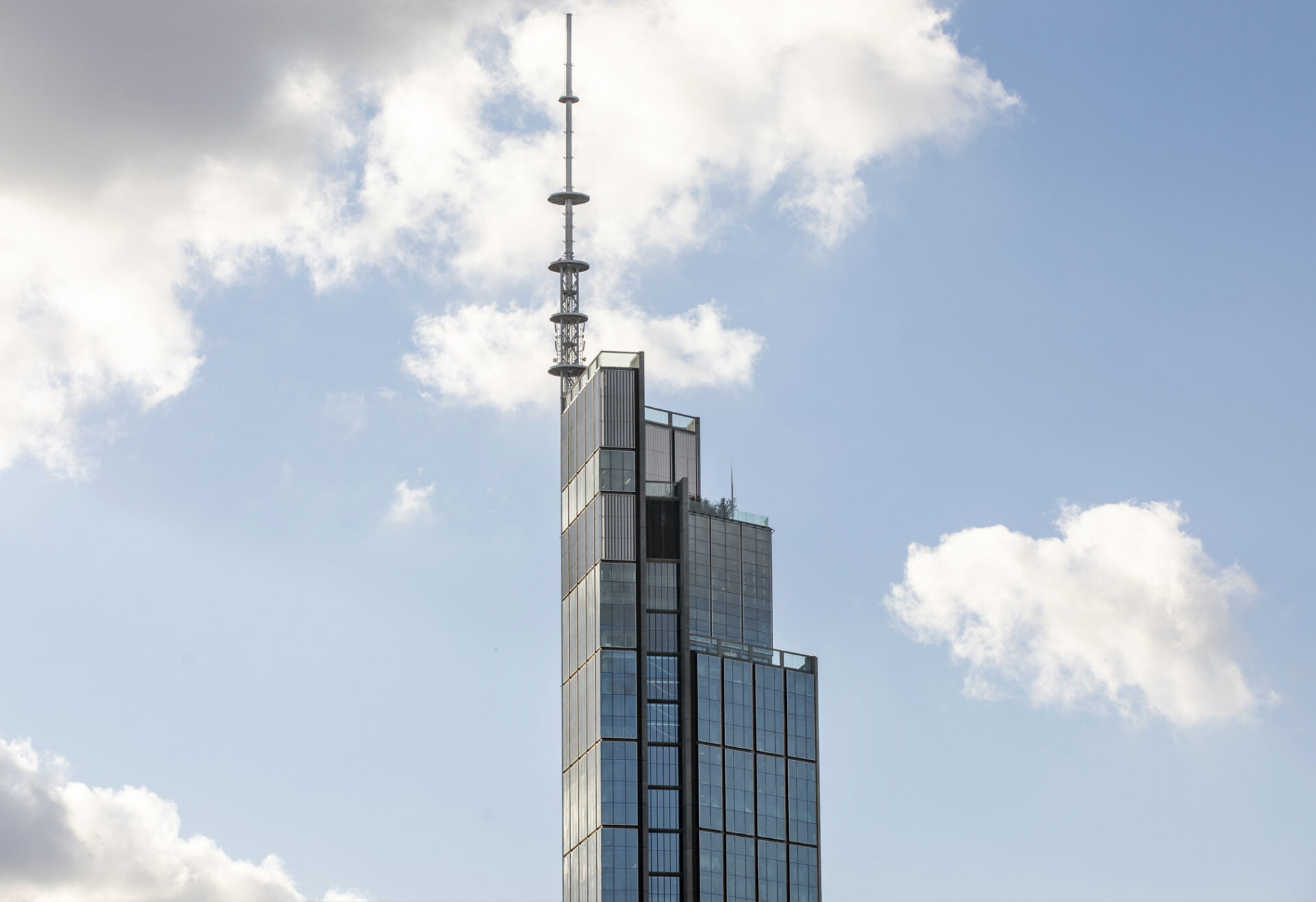 El proyecto dispone de una calificación energética BREEAM Excelente, según los estándares polacos de 2021. La envolvente se caracteriza por un sistema de muro cortina tipo Unitized, ejecutado por la empresa Scheldebouw del grupo Permasteelisa. La intervención de Escofet se centra en el revestimiento opaco de las fachadas, con 2.426 unidades de panel UHPC, en una superficie total aproximada de 12.400 m². Inicialmente, para este proyecto se habían previsto revestimientos de GRC por la delgadez y ligereza de las láminas del sistema Stud frame, pero la propuesta de Escofet con UHPC convenció al equipo redactor del proyecto por la alta calidad del producto y la solución constructiva.